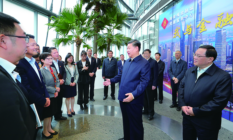 2018年11月6日至7日,中共中央總書(shū)記、國(guó)家主席、中央軍委主席習(xí)近平在上??疾臁_@是6日上午,習(xí)近平在上海中心大廈22層的陸家嘴金融城黨建服務(wù)中心,同正在聯(lián)合開(kāi)展主題黨日活動(dòng)的企業(yè)黨員親切交談。 新華社記者 謝環(huán)馳/攝