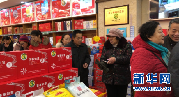 圖為老百姓正在排隊(duì)購買糧油店商品。新華網(wǎng)汪亞/攝