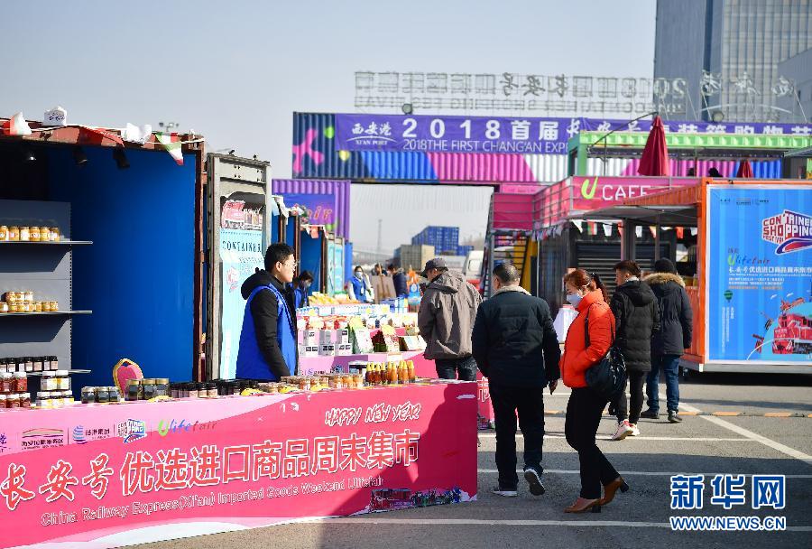在陜西西安國際港務(wù)區(qū),消費(fèi)者在“長安號”優(yōu)選進(jìn)口商品周末集市上參觀(1月19日攝)。新華社記者 邵瑞 攝