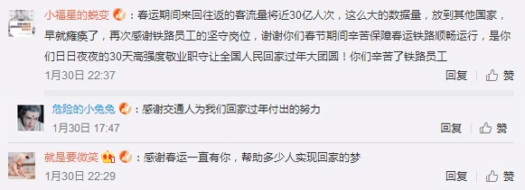 因?yàn)榇蠼中枰饲鍜撸中g(shù)臺(tái)需要人堅(jiān)守,治安需要人維護(hù)。正是千千萬(wàn)萬(wàn)人用千千萬(wàn)萬(wàn)次的堅(jiān)守,才支撐起了更多人的每一次團(tuán)圓?;丶业娜耍€欠他們一聲謝謝!