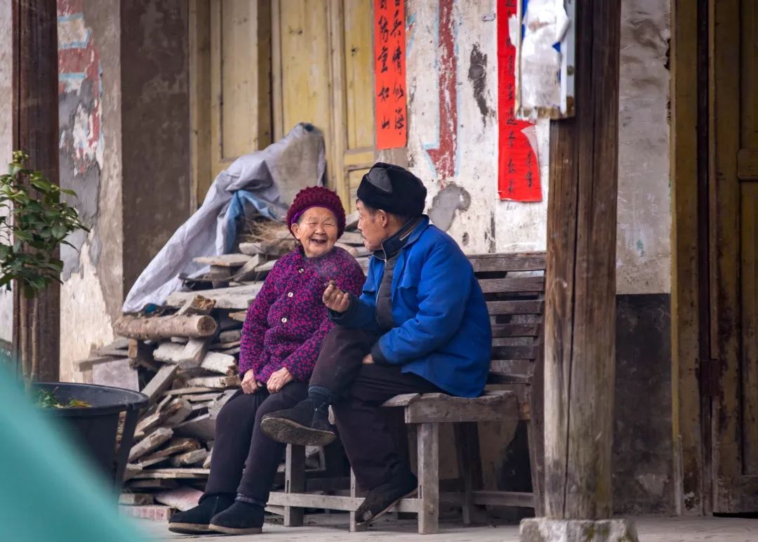 2019-01-27,湖北利川。相伴終生,白頭到老,就是最浪漫的事。利川市黃泥塘一對(duì)夫妻在一起開心地聊天。作者:利川六哥