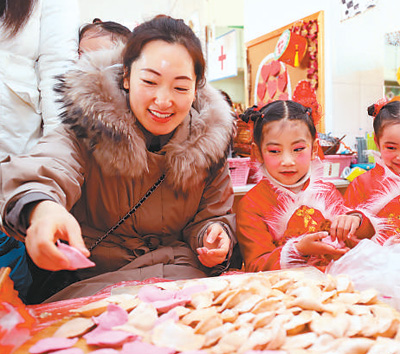 江蘇連云港一對母女在包餃子。司 偉攝(人民視覺)