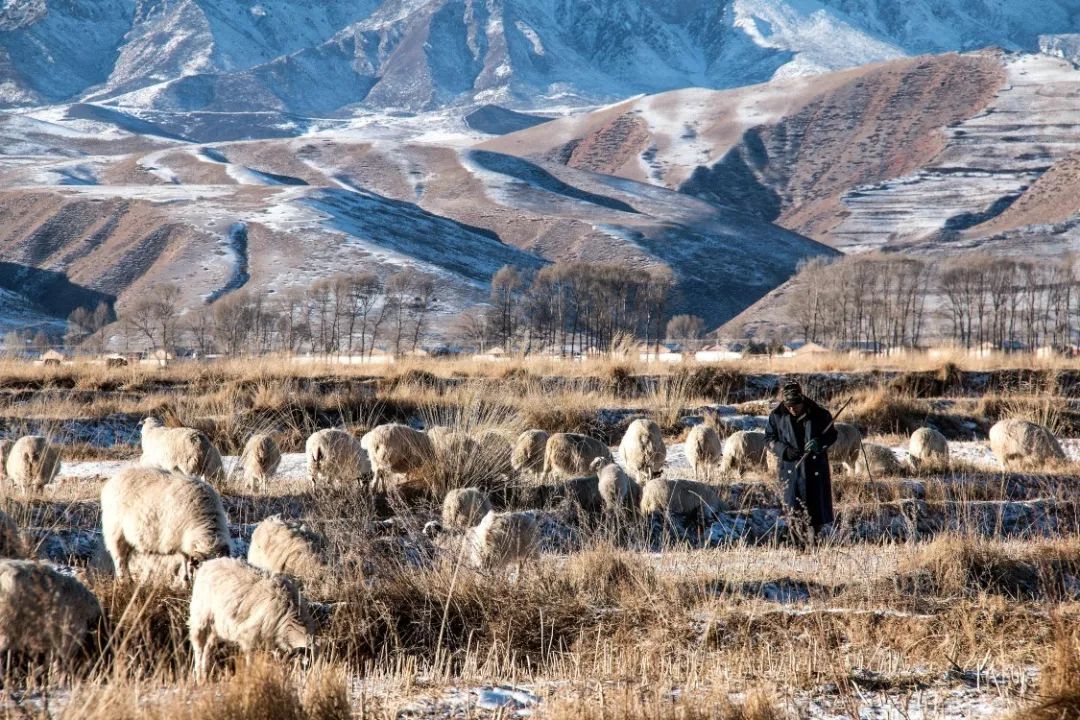 2018-12-22,甘肅省張掖市民樂(lè)縣。冬日里一片蒼茫,在寒風(fēng)中,一個(gè)牧羊人正在守望著他的羊群。作者:清風(fēng)撫柳