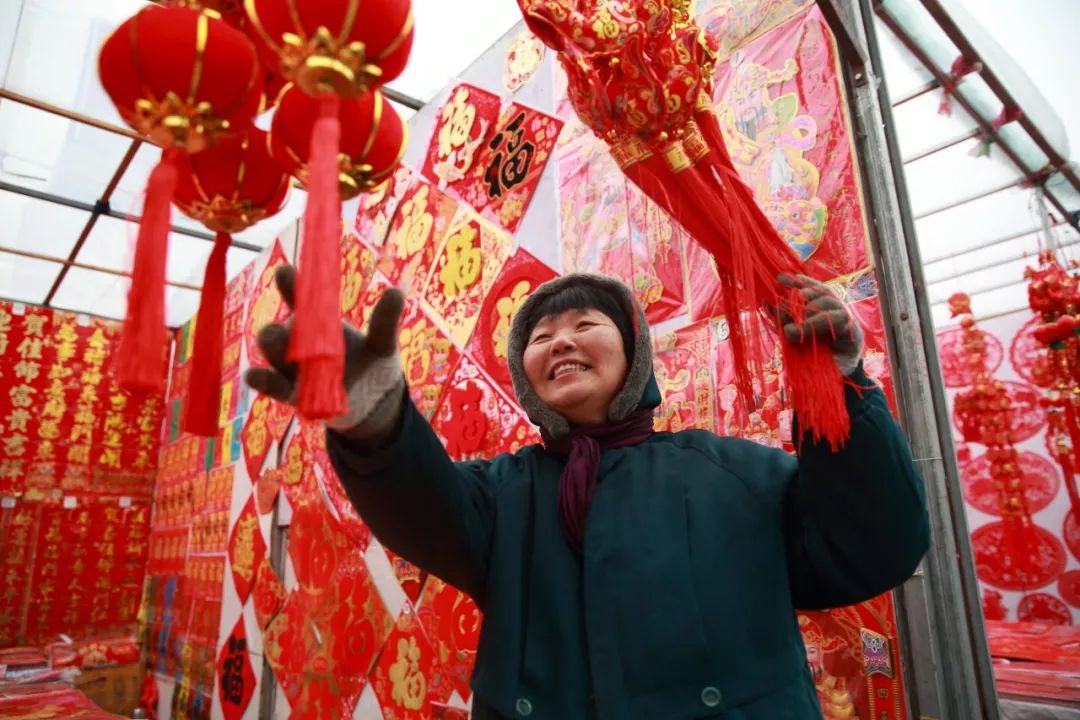 2019-01-27,遼寧省東港市。春節(jié)前夕,一位阿姨在對(duì)聯(lián)市場(chǎng)挑選燈籠。作者:青春