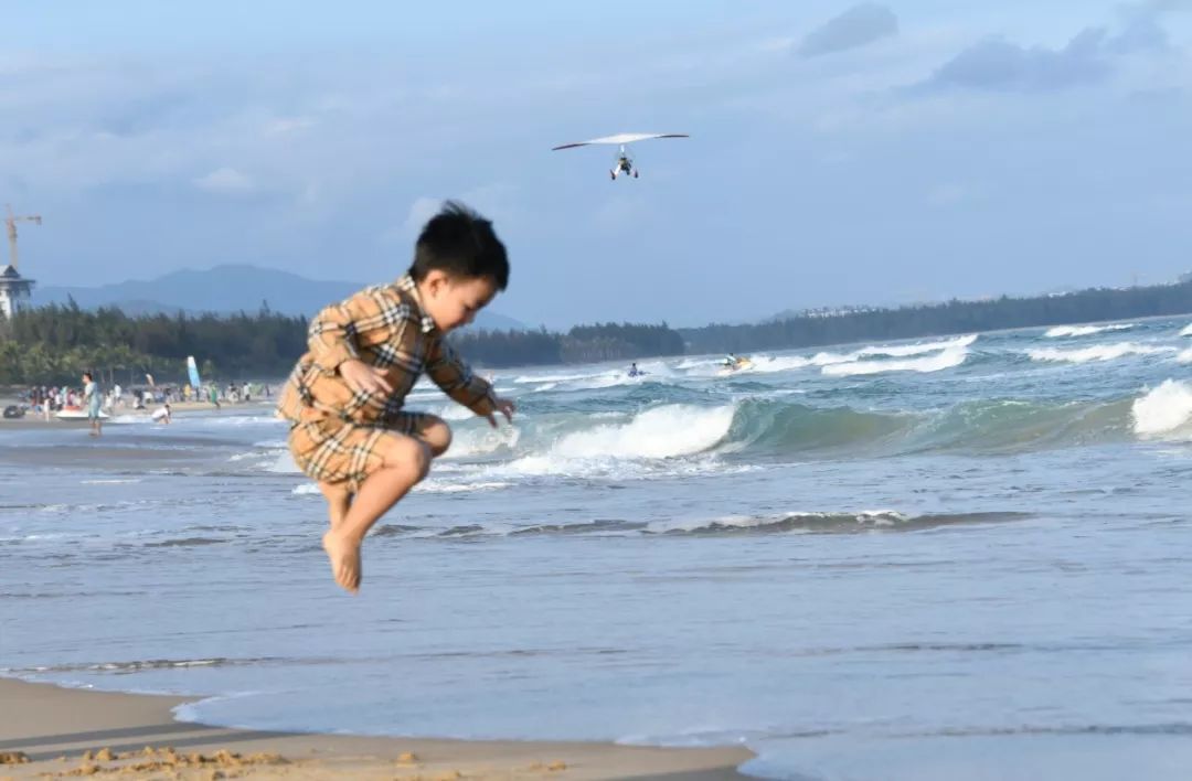 2019-02-03,海南省三亞市。一個(gè)小孩想和飛機(jī)比誰(shuí)高。作者:冉建秀