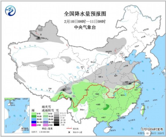 受冷空氣和西南暖濕氣流共同影響,9日至10日,西北地區(qū)東部、華北北部和南部、黃淮、江淮、江漢中北部等地有小到中雪或雨轉(zhuǎn)雪(雨夾雪),部分地區(qū)有大雪,局地有暴雪;四川盆地東部、江南、華南等地有小到中雨。