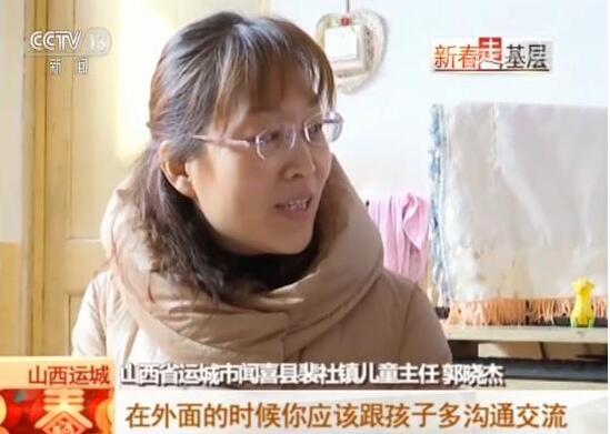 我國從2016年開始對全國留守兒童進行摸底調(diào)查,繼而開始推動基層兒童工作隊伍建設(shè),目前全國已經(jīng)有62.5萬名村居兒童主任,在兜底保障近700萬留守兒童的生活。春節(jié)前,新春走基層的記者來到山西省運城市聞喜縣,這里是我國最早設(shè)立兒童主任的試點地區(qū),郭曉杰就是一位守護100多名留守兒童的村居兒童主任。
