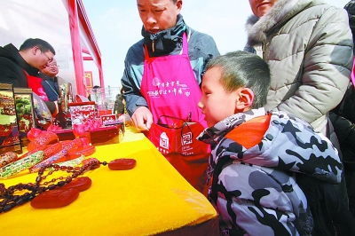 享受了一把精神“大餐”過(guò)后,如果也能獲得一些物質(zhì)上的收獲,那就再完美不過(guò)了。在慈寧宮花園、慈寧門(mén)外廣場(chǎng),“中華老字號(hào)故宮過(guò)大年”熱鬧非凡,來(lái)自山東、北京、天津、山西等10個(gè)省市以及5家非物質(zhì)文化遺產(chǎn)傳承人,共計(jì)150家單位參加此次活動(dòng)。