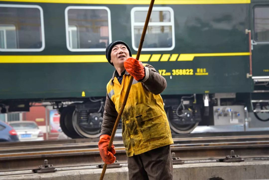 2019-02-01,河南鄭州火車站?!板N叔”鄭獻敏是鄭州車輛段的職工,38年來,他忙碌于站臺上,穿梭于股道間,用一把小小的檢車錘確保著南來北往的旅客的乘車安全。作者:趙慶