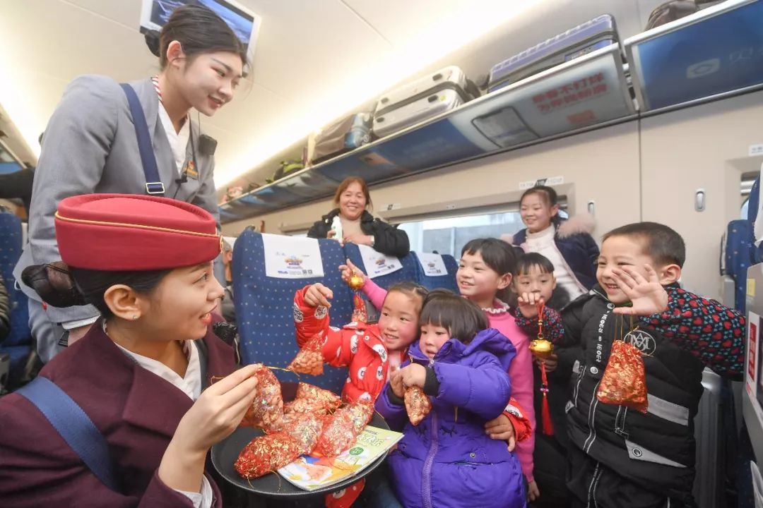 2019-01-24,重慶。春運期間,大批務工人員的子女隨長輩踏上與父母團聚的旅途,南鐵福州客運段提前對重點線路乘務組進行兒童陪護培訓,用愛心護航“小候鳥”的團圓路。作者:波馬