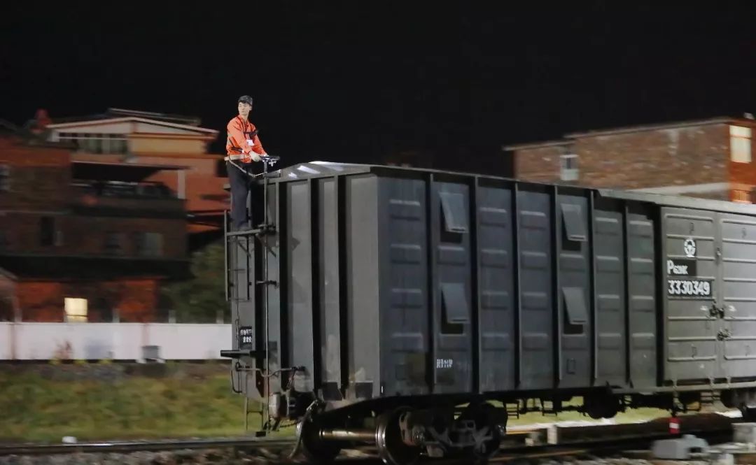 2019-02-02,長沙車務段路口鋪車站。在搶運航油、汽油等油品的專列上,連接員掛在車梯上編組列車。作者:麥子熟了