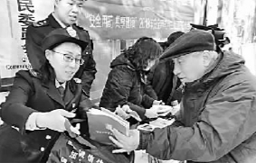 藥品監(jiān)管部門(mén)工作人員向居民宣傳安全用藥知識(shí)。光明圖片