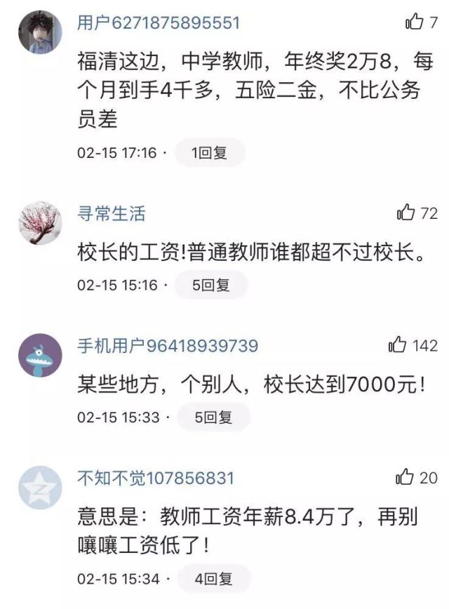 2月15日,經(jīng)濟(jì)日?qǐng)?bào)新聞客戶端推送消息《教育部:某些國(guó)家級(jí)少數(shù)民族貧困縣教師月薪已達(dá)7000元》,引起大家的強(qiáng)烈反響。對(duì)于目前大多數(shù)教師的薪資水平、怎么看待教師待遇、怎么評(píng)價(jià)待遇的高低才客觀等問(wèn)題,眾多網(wǎng)友進(jìn)行了熱烈的討論,有教師還曬出了自己工資單……