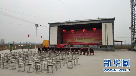 圖為位于楊柴曲村休閑文化廣場(chǎng)中的戲樓。新華網(wǎng)記者?李志強(qiáng)?攝?