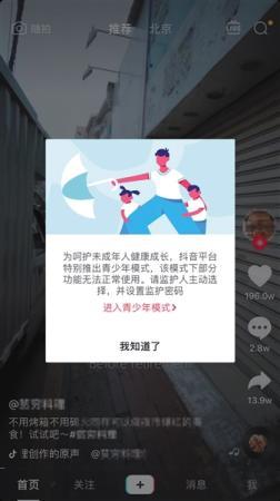 以抖音和快手為例,“青少年模式”開啟后,用戶每天使用時長不超過40分鐘,而且晚上10點至早上6點無法使用。另外,無法開啟直播和瀏覽同城頁面,也無法進行打賞、充值、提現(xiàn)、直播等操作。這些功能只有通過輸入密碼,關(guān)閉青少年模式才能再度開啟。