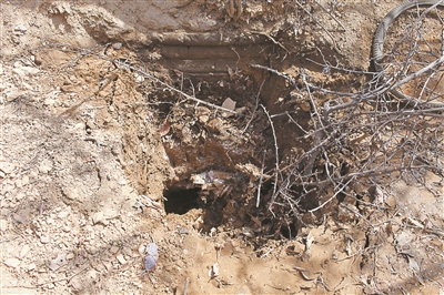 2015年一場(chǎng)降雨過后,寶頂旁的泥土出現(xiàn)沉降,露出一個(gè)回填不實(shí)的盜洞