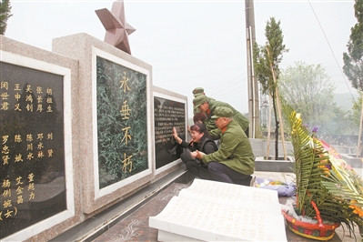 30多年的漫長等待之后,親人第一次來梁瑞聰烈士墓前祭奠掃墓。梁英海 攝