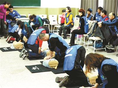 志愿者進(jìn)行急救培訓(xùn)