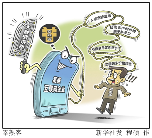 俗話說,人熟為寶。在傳統(tǒng)商業(yè)道德里,熟客應(yīng)該享受優(yōu)待。然而,如今人們發(fā)現(xiàn),熟客往往頻頻挨宰:個(gè)人信息被濫用、給老客戶的價(jià)格高于新手價(jià)、專挑會(huì)員定向漲價(jià)、買得越多價(jià)格越貴……一些網(wǎng)絡(luò)平臺(tái)用大數(shù)據(jù)技術(shù)收集分析消費(fèi)者偏好、消費(fèi)能力等信息后,不約而同地把矛頭指向熟客,以至于有人感嘆“最懂你的人傷你最深”。