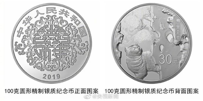 明起,中國人民銀行將發(fā)行2019吉祥文化金銀紀(jì)念幣一套。該套金銀紀(jì)念幣共7枚,其中金質(zhì)紀(jì)念幣2枚,銀質(zhì)紀(jì)念幣5枚,均為中華人民共和國法定貨幣。“壽居耄耋”、“榴開百子”、“珠聯(lián)璧合”、“喜上眉梢”……這些紀(jì)念幣都長啥樣?快來看!