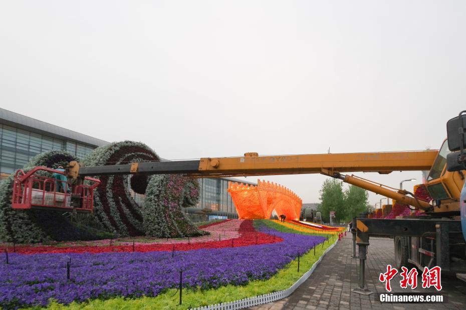 4月18日晚,北京奧林匹克公園內的“絲路金橋”主題景觀點亮燈光,附屬的花壇景觀正在緊張施工?!敖z路金橋”由中國藝術家舒勇創(chuàng)作,長28米、高6米、寬4米,是以“一帶一路”倡議為語境的大型藝術作品,此次作為第二屆“一帶一路”國際合作高峰論壇的主題花壇亮相。中新社記者 賈天勇 攝