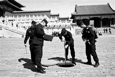 故宮消防中隊(duì)指戰(zhàn)員對(duì)消防設(shè)施進(jìn)行巡查 攝影/本報(bào)記者 李娜