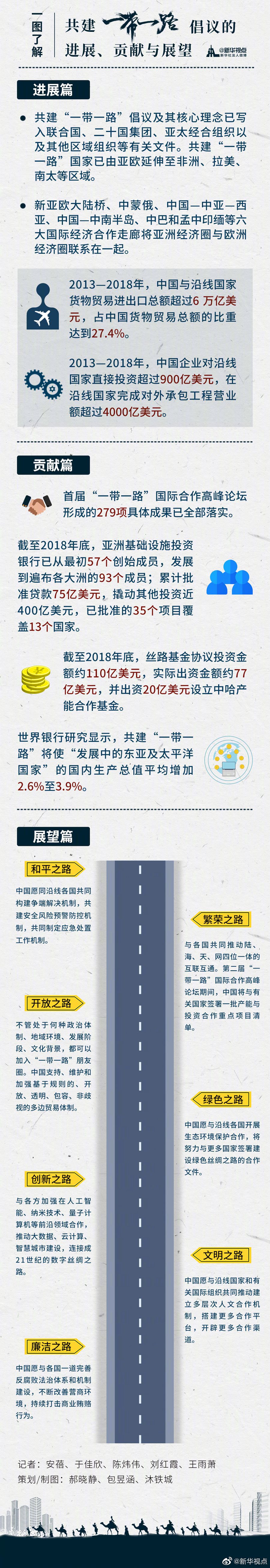 第二屆“一帶一路”國際合作高峰論壇召開在即,推進“一帶一路”建設(shè)工作領(lǐng)導(dǎo)小組辦公室22日發(fā)表《共建“一帶一路”倡議:進展、貢獻與展望》報告。報告中有哪些干貨?一圖帶你了解。?