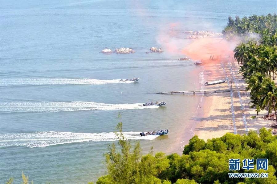 2016年9月18日,中俄“海上聯(lián)合-2016”演習(xí)舉行立體奪控島礁演練。這是陸戰(zhàn)隊(duì)員乘舟沖上灘頭。新華社發(fā)(孫宏韜 攝)