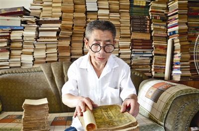 他眼中的這些“精神財富”,曾被妻子看成廢紙一堆,勸他賣書換錢供兒子上大學(xué),但他堅決不肯,仍是繼續(xù)悄悄買書帶回家中,至今如此。