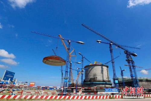 資料圖:圖為中國自主三代核電技術(shù)“華龍一號(hào)”吊裝穹頂。中新社發(fā) 黃穗芳 攝