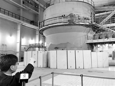 1958年,在蘇聯(lián)的幫助下,“一堆一器”建成投運,開啟了中國原子能時代。近日,在參加“壯麗70年·奮斗新時代”活動期間,記者走進中國原子能科學研究院。圖為近日工作人員在我國第一座重水反應(yīng)堆前講述相關(guān)歷史。本報記者 陳瑜 攝