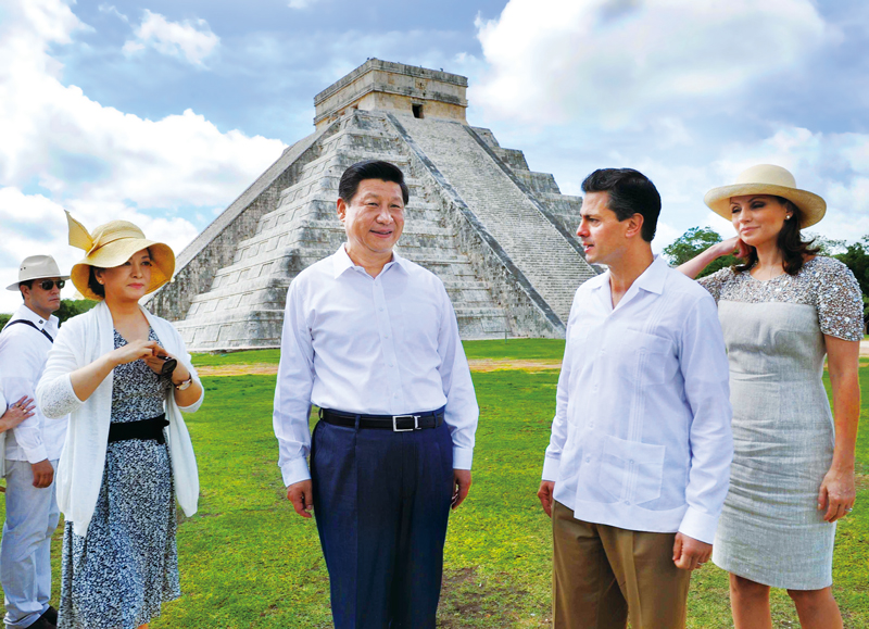 2013年6月6日,為推進(jìn)中墨兩個文明古國的文化交流,國家主席習(xí)近平應(yīng)培尼亞總統(tǒng)邀請參觀奇琴伊察瑪雅文明遺址。 新華社記者 饒愛民/攝