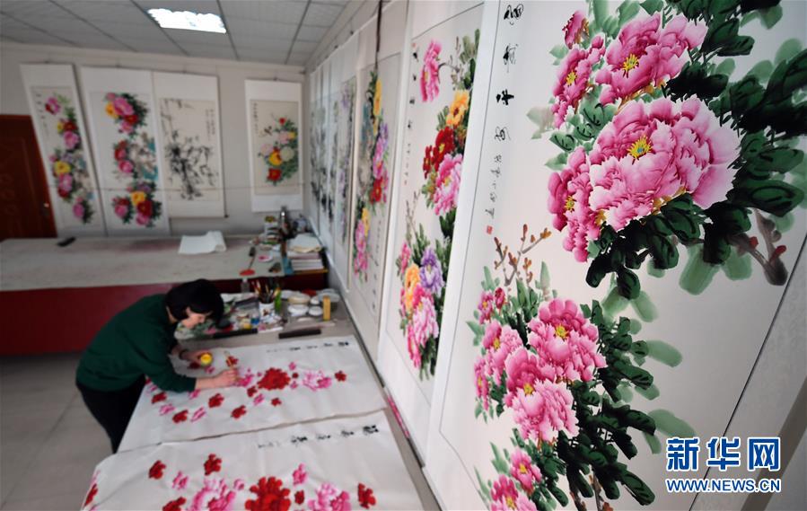 作畫近30年的郭亞修認(rèn)為鄉(xiāng)土地域和人文環(huán)境成就了平樂(lè),“平樂(lè)人愛(ài)牡丹、畫牡丹,牡丹寓意富貴、吉祥,平樂(lè)就從牡丹里討到了名氣和財(cái)氣?!?如今,平樂(lè)社區(qū)有千余名農(nóng)民畫家以畫牡丹為生。