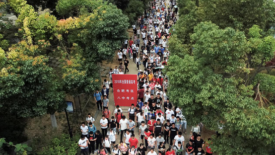 2018年6月7日,高考首場科目考試結束。在安徽省合肥市第八中學考點,完成第一門考試的考生走出考場(無人機拍攝)。 新華社記者張端攝