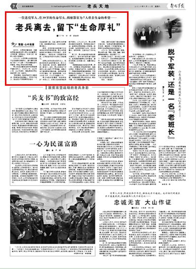 老兵季必林走了,卻為他人點(diǎn)燃了“生命之火”,在生命得到延續(xù)的同時(shí),也將無私的大愛留在了人間,贏得了全社會(huì)的敬意。地方領(lǐng)導(dǎo)和縣退役軍人事務(wù)局專程前來慰問季必林的家人,提出要針對(duì)其家庭困難給予扶持幫助。社會(huì)各界群眾和季必林的戰(zhàn)友也紛紛捐款,獻(xiàn)出愛心。他的老部隊(duì)不僅把季必林的事跡載入連史館,還決定通過愛心捐助,資助季必林的一對(duì)兒女直至其成年。