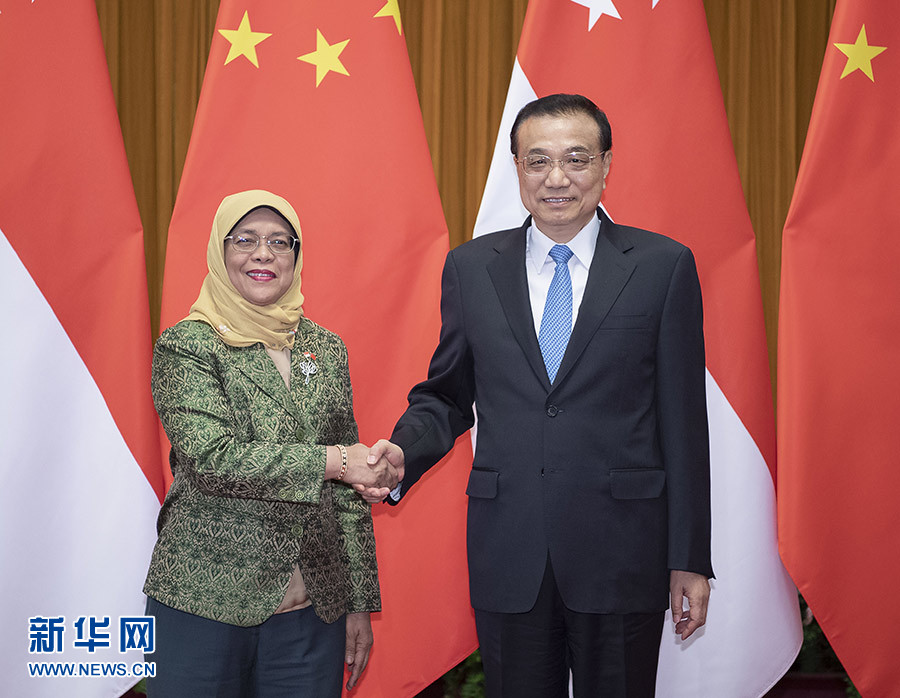 李克強(qiáng)表示,中國和新加坡隔海相望,兩國在相互尊重、平等合作、互利共贏基礎(chǔ)上發(fā)展了良好關(guān)系,給兩國人民帶來福祉。新加坡是個(gè)多元文明構(gòu)成的社會(huì)。昨天,習(xí)近平主席同總統(tǒng)女士舉行了富有成果的會(huì)見,展望了兩國關(guān)系廣闊前景。中方愿同新方發(fā)揮各自優(yōu)勢(shì),保持良好合作勢(shì)頭,繼續(xù)挖掘合作潛力,將“一帶一路”倡議同新方發(fā)展戰(zhàn)略相銜接,推動(dòng)中國西部地區(qū)和新加坡對(duì)接,扎實(shí)推進(jìn)“陸海新通道”、第三方市場(chǎng)、智慧城市、技能培訓(xùn)等領(lǐng)域合作。希望雙方推進(jìn)文明和文化的交流,密切人員往來,夯實(shí)兩國友好的民意基礎(chǔ),促進(jìn)雙邊關(guān)系繼續(xù)向前發(fā)展。中方愿同新方共同應(yīng)對(duì)全球性挑戰(zhàn),為世界和地區(qū)的和平穩(wěn)定發(fā)展作出貢獻(xiàn)。