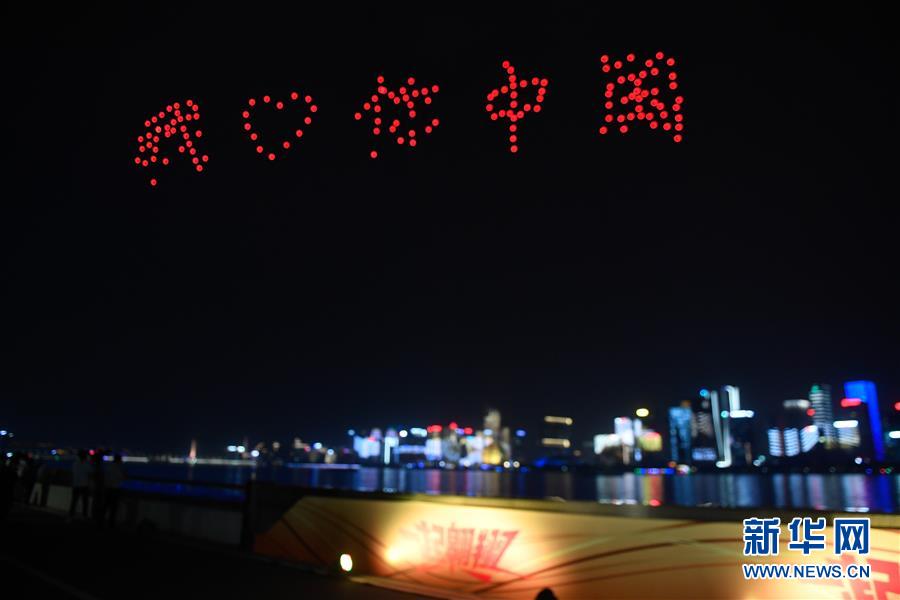 5月20日,約150架無(wú)人機(jī)空中編隊(duì)在錢(qián)塘江上空組成“我愛(ài)你中國(guó)”字樣。 當(dāng)晚,在浙江杭州錢(qián)塘江畔,城市燈光秀和約150架無(wú)人機(jī)組成的空中編隊(duì)表演交相輝映?!?20中國(guó)”“我愛(ài)你中國(guó)”“70年”……對(duì)祖國(guó)進(jìn)行的一場(chǎng)“深情告白”閃耀錢(qián)塘兩岸。 新華社記者黃宗治攝