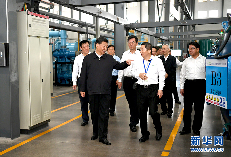 20日中午,習近平乘機抵達贛州,首先考察江西金力永磁科技股份有限公司。在企業(yè)展廳,習近平認真聽取企業(yè)生產(chǎn)經(jīng)營和贛州稀土產(chǎn)業(yè)發(fā)展情況介紹,詳細了解我國稀土資源的分布狀況、開發(fā)技術(shù)、應(yīng)用情況以及生產(chǎn)加工中采取的環(huán)境保護舉措。在生產(chǎn)車間,習近平仔細察看包裝自動檢測線、高性能燒結(jié)爐等設(shè)備生產(chǎn)運行情況,同現(xiàn)場工人親切交流。習近平對企業(yè)加大科研投入、致力科技創(chuàng)新、注重生態(tài)修復(fù)的做法給予肯定。他強調(diào),技術(shù)創(chuàng)新是企業(yè)的命根子。擁有自主知識產(chǎn)權(quán)和核心技術(shù),才能生產(chǎn)具有核心競爭力的產(chǎn)品,才能在激烈的競爭中立于不敗之地。要緊緊扭住技術(shù)創(chuàng)新這個戰(zhàn)略基點,掌握更多關(guān)鍵核心技術(shù),搶占行業(yè)發(fā)展制高點。稀土是重要的戰(zhàn)略資源,也是不可再生資源。要加大科技創(chuàng)新工作力度,不斷提高開發(fā)利用的技術(shù)水平,延伸產(chǎn)業(yè)鏈,提高附加值,加強項目環(huán)境保護,實現(xiàn)綠色發(fā)展、可持續(xù)發(fā)展。