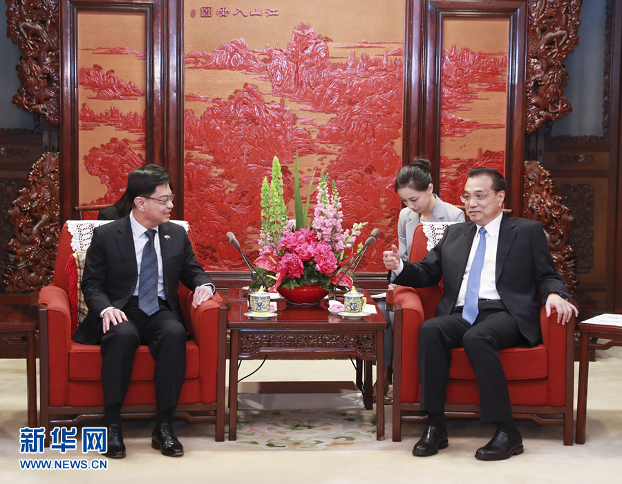 李克強表示,當前中新關系發(fā)展勢頭良好。中方愿同新方繼續(xù)密切高層交往,將“一帶一路”倡議同新方發(fā)展戰(zhàn)略更好對接,發(fā)揮好兩國副總理級雙邊合作機制作用,推進“陸海新通道”和第三方市場合作,深化貿易投資、金融、智慧城市以及中國地方省市同新加坡的合作,推動兩國關系與合作再上新臺階。