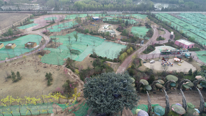 黃河大堤內(nèi)修建的違建項(xiàng)目法莉蘭童話(huà)王國(guó)主題樂(lè)園航拍。李鵬 尚昆侖 攝