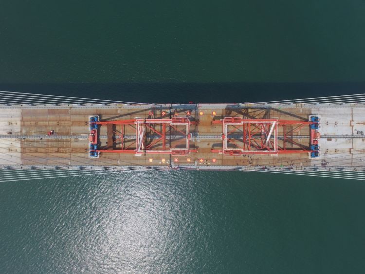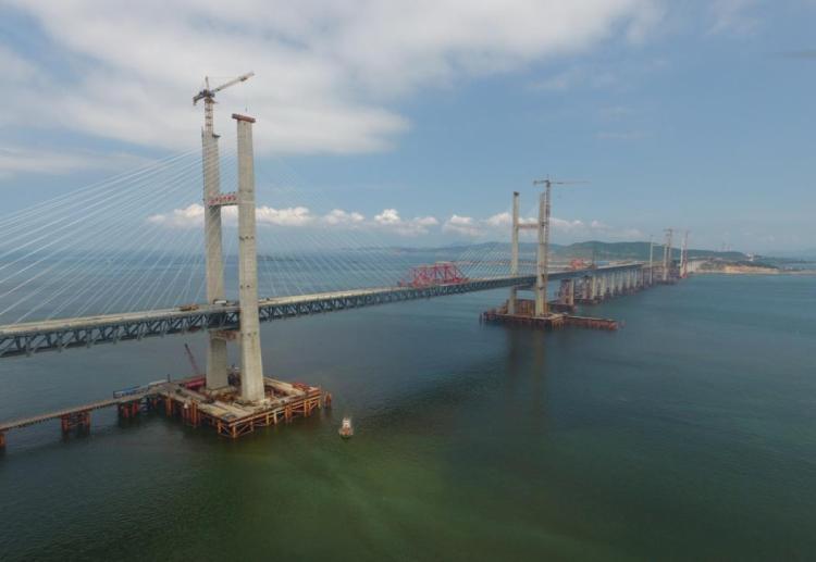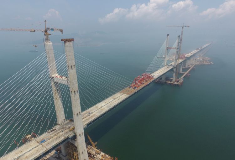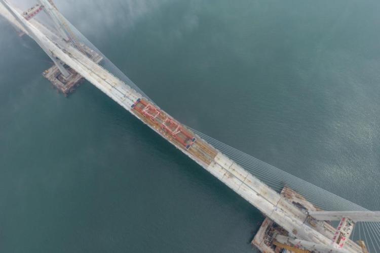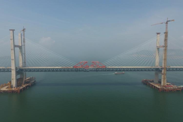 6月5日,福平鐵路平潭海峽公鐵兩用大橋元洪航道橋主橋成功合龍。(新華社記者林善傳攝)