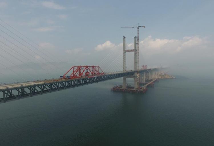 6月5日,福平鐵路平潭海峽公鐵兩用大橋元洪航道橋主橋合龍。(新華社記者林善傳 攝)