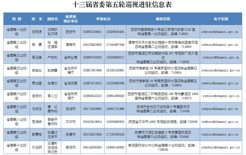 根據(jù)安排,省委巡視組將在被巡視地區(qū)、單位工作1個(gè)月左右。巡視期間設(shè)值班電話、郵政信箱、電子郵箱等,巡視組受理信訪時(shí)間截止到2019年6月30日。省紀(jì)委監(jiān)委信訪舉報(bào)受理電話(029—12388)、信箱(西安市雁塔區(qū)雁塔路南段十號(hào)陜西省紀(jì)委監(jiān)委信訪室)和網(wǎng)上舉報(bào)窗口(http://shaanxi.12388.gov.cn),同步受理涉及秦嶺生態(tài)環(huán)境保護(hù)的信訪舉報(bào)。根據(jù)秦嶺生態(tài)環(huán)境保護(hù)專項(xiàng)巡視工作要求,省委巡視組主要受理反映被巡視地區(qū)和單位秦嶺生態(tài)環(huán)境保護(hù)方面的問(wèn)題和線索。對(duì)不屬于這次專項(xiàng)巡視受理范圍的信訪問(wèn)題反映,將按規(guī)定轉(zhuǎn)交被巡視地區(qū)或單位和有關(guān)部門認(rèn)真處理。