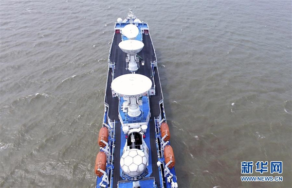 新華社南京6月8日電(記者 劉詩平、李雨澤)8日9時,遠望3號遠洋航天測量船一聲長鳴,駛出中國衛(wèi)星海上測控部碼頭,航向南太平洋某預定海域執(zhí)行衛(wèi)星海上測控任務。