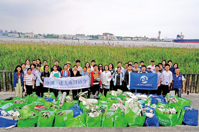 仁渡海洋的志愿者在凈灘活動(dòng)中留影。