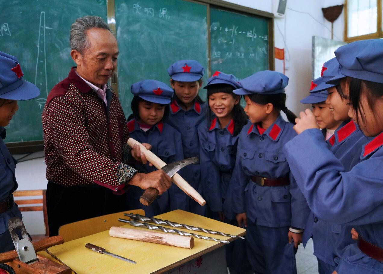 江西省于都縣長征源小學邀請國家級非物質(zhì)文化遺產(chǎn)項目——于都嗩吶“公婆吹”藝術傳承人肖卿華和徒弟來校,現(xiàn)場演示嗩吶制作過程以及吹奏技巧,讓學生們近距離領略傳統(tǒng)文化的獨特魅力。