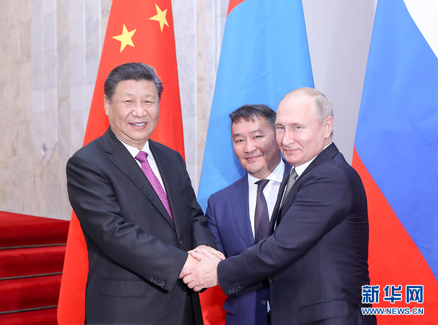 習(xí)近平指出,今年中方將分別同俄蒙兩方慶祝建交70周年,中俄蒙三方合作將迎來新的機(jī)遇。在當(dāng)前國際上保護(hù)主義、單邊主義抬頭背景下,三方要堅(jiān)定促進(jìn)區(qū)域合作、實(shí)現(xiàn)共同發(fā)展的目標(biāo),圍繞三國發(fā)展戰(zhàn)略對(duì)接這條主線,推進(jìn)各領(lǐng)域全面合作,共同釋放三國維護(hù)多邊主義、打造開放型世界經(jīng)濟(jì)的積極信號(hào)。