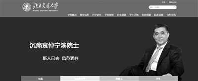 北京交通大學(xué)在官網(wǎng)首頁悼念寧濱。
