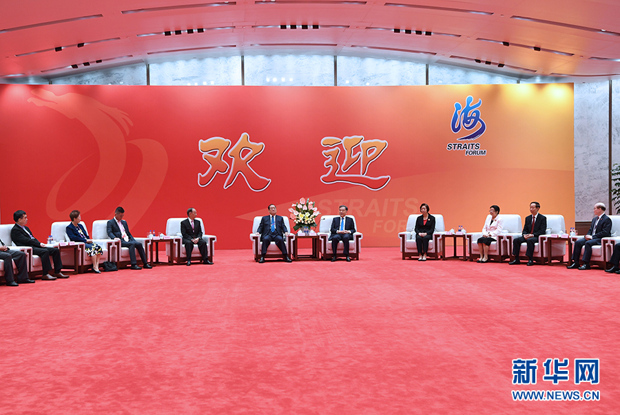 6月16日,中共中央政治局常委、全國政協(xié)主席汪洋在廈門出席第十一屆海峽論壇并致辭。這是論壇開幕前,汪洋會見出席論壇的部分兩岸嘉賓和主辦單位代表。 新華社記者 饒愛民 攝