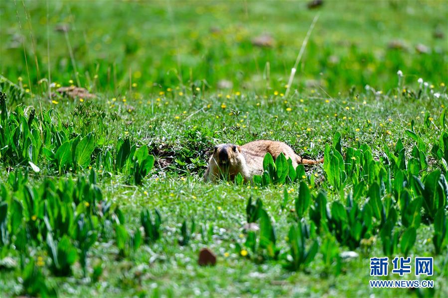 這是在青海省玉樹(shù)藏族自治州雜多縣昂賽鄉(xiāng)境內(nèi)拍攝的旱獺(6月21日攝)。新華社記者 張龍 攝